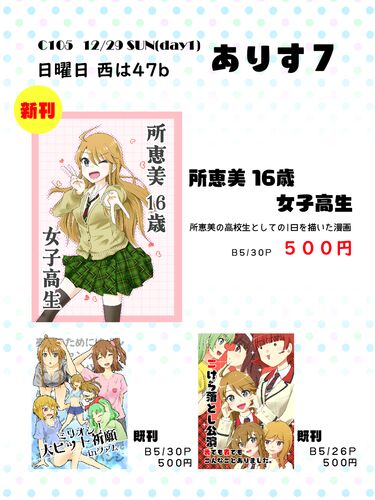 ご無沙汰しております。 冬コミの季節がやってきました。 C105は、「日曜日 西は47b」に配置されました。 毎度おなじみ、アイドルマスタージャンルです。 1日目、12月29日。ひっさしぶりに大晦日がフリーです! やったーーーーーーーーーーーーーーーーー!…